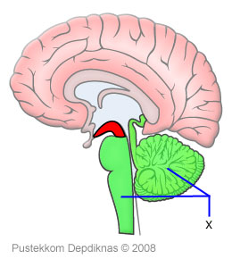 Otak belakang terletak di bawah lobus oksipital serebrum, terdiri atas dua belahan dan permukaannya berlekuk-lekuk. Otak belakang terdiri atas tiga bagian utama yaitu: jembatan Varol (pons Varolli), otak kecil (serebelum), dan sumsum lanjutan (medula oblongata). Ketiga bagian otak belakang ini membentuk batang otak. Jembatan Varol berisi serabut yang menghubungkan lobus kiri dan lobus kanan otak kecil, menghubungkan antara otak kecil dengan korteks otak besar. Otak kecil, terletak di bawah bagian belakang otak belakang, terdiri atas dua belahan yang berliku-liku sangat dalam. Otak kecil berperan sebagai pusat keseimbangan, koordinasi kegiatan otak, koordinasi kerja otot dan rangka. Sumsum lanjutan, medula oblongata membentuk bagian bawah batang otak, berfungsi sebagai pusat pengatur refleks fisiologis, misalnya pernapasan, detak jantung, tekanan darah, suhu tubuh, gerak alat pencernaan, gerak refleks seperti batuk, bersin, dan mata berkedip.